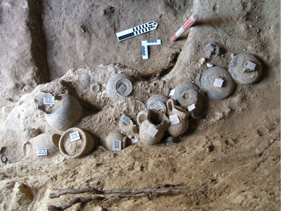 Questa tomba, risalente al VI-V secolo a.C., contiene i resti di cinque bambini e un corredo funebre composto principalmente da utensili da cucina e contenitori per alimenti. L’orientamento della tomba, i materiali utilizzati e la precisione della sua realizzazione indicano l’appartenenza a una famiglia di alto rango, probabilmente influenzata dalle tradizioni etrusche e umbre.